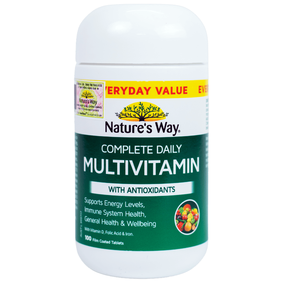 Mô tả: Complete Daily Multivitamin là viên uống bổ sung 19 loại vitamin và khoáng chất cho cơ thể, hỗ trợ chống oxy hóa, giúp nâng cao sức đề kháng.