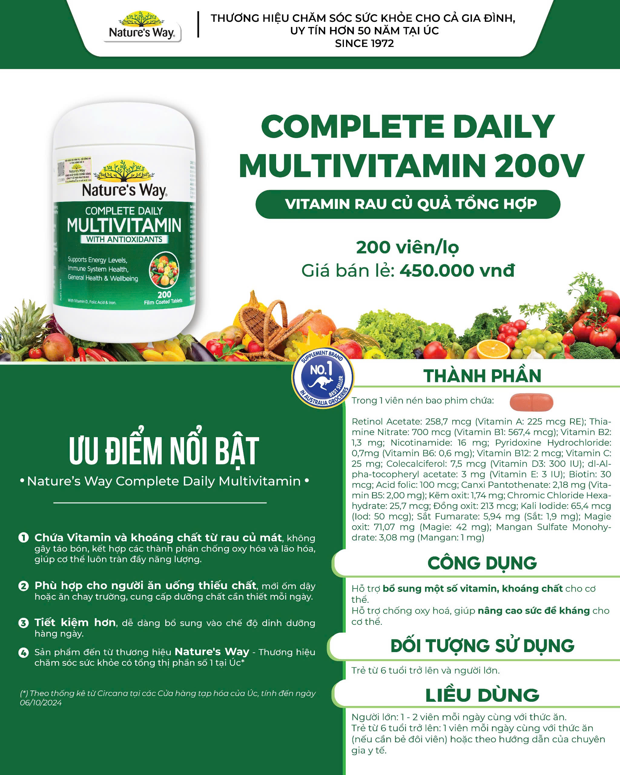 Theo thống kê của Circana dựa trên tổng doanh thu tại các nhà thuốc và siêu thị tại Úc, tính đến ngày 6 tháng 10 năm 2024, Nature’s Way đang chiếm đến 68,8% thị phần - Gấp 7,4 lần so với thương hiệu ở vị trí số 2.