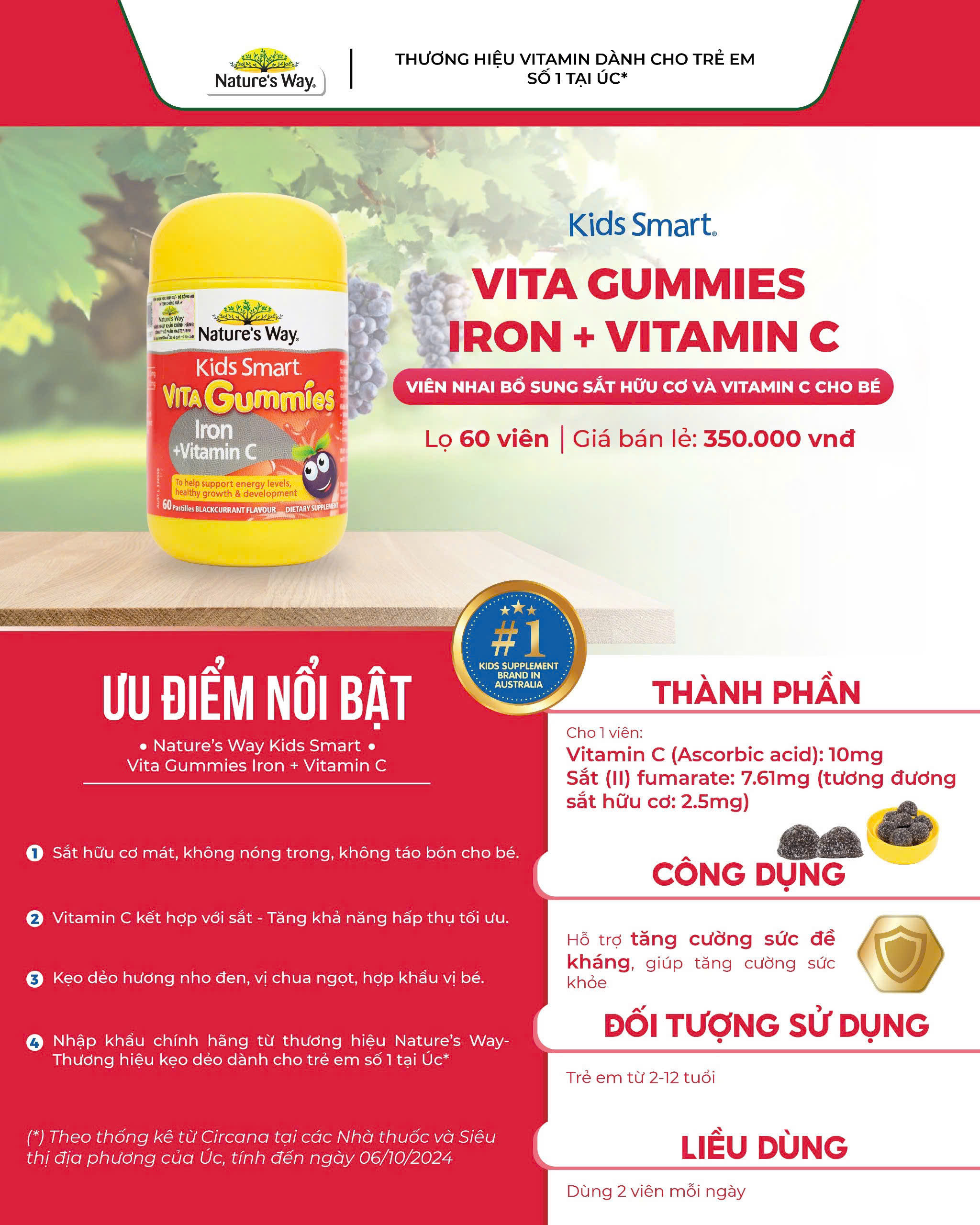 Trẻ em từ 2 đến 12 tuổi có nhu cầu bổ sung sắt và vitamin C để hỗ trợ sức đề kháng.