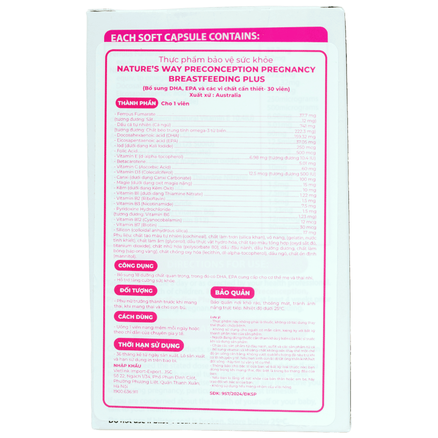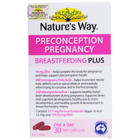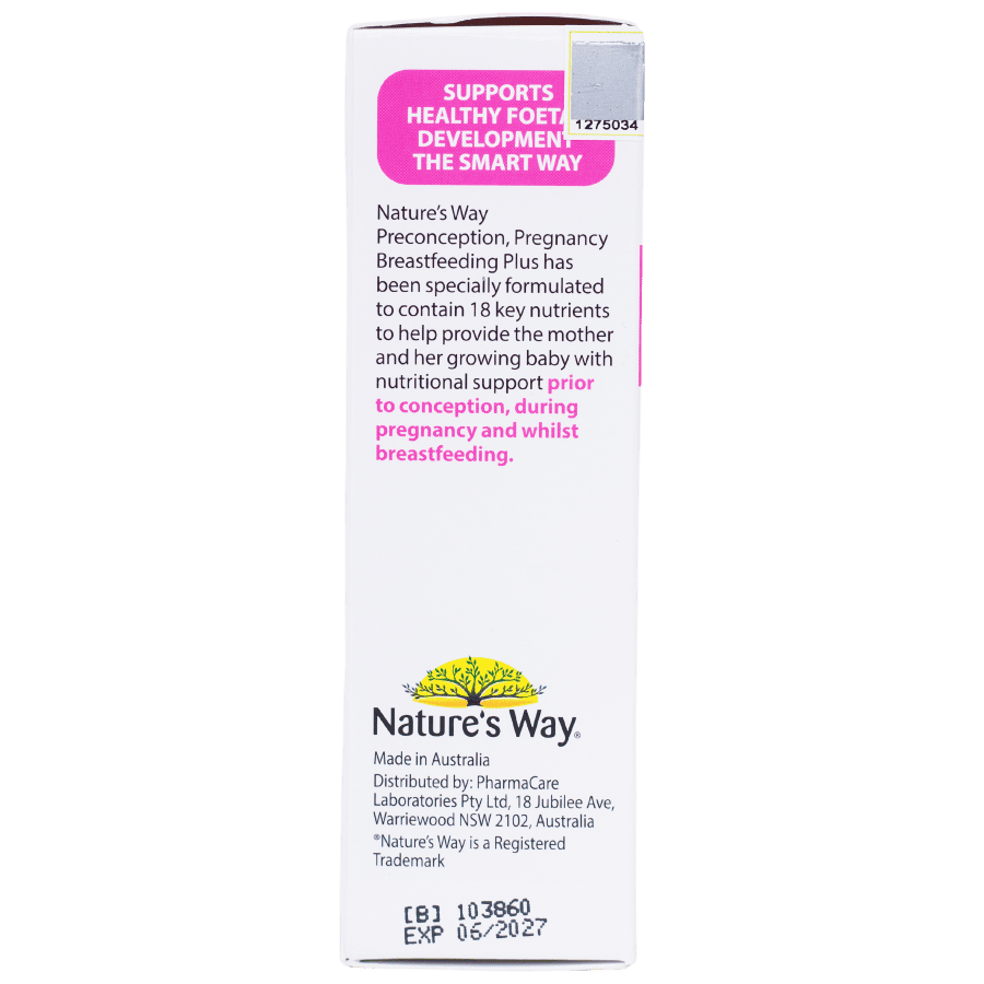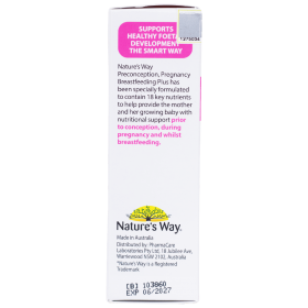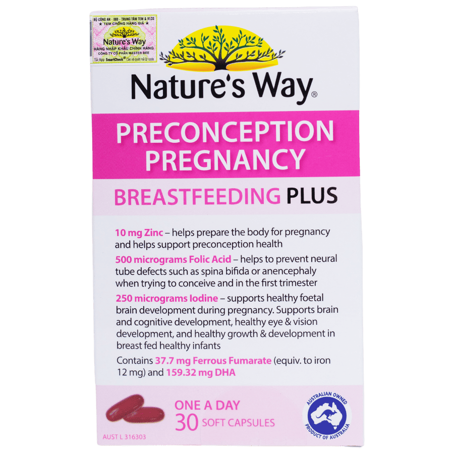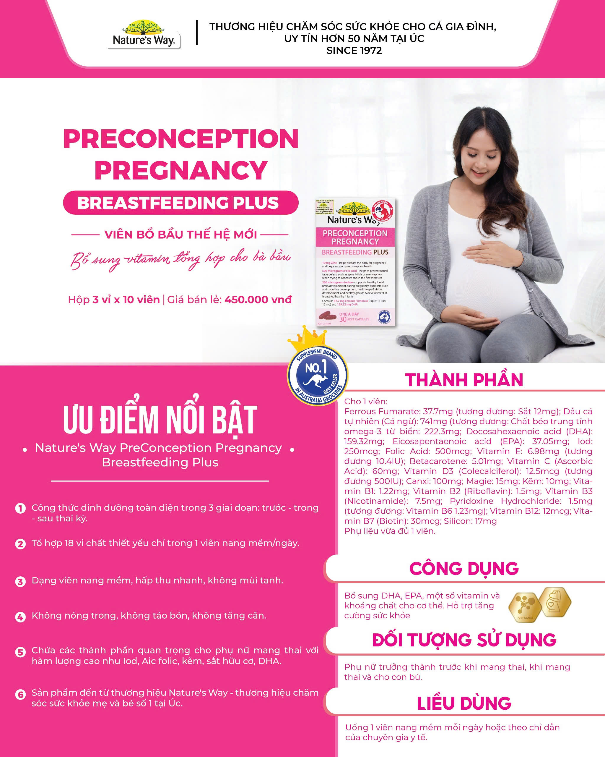 Mô tả: Vitamin Bầu Plus Nature’s Way là vitamin tổng hợp dành cho mẹ trước, trong và sau sinh, giúp mẹ bổ sung 18 loại vitamin thiết yếu, dễ hấp thụ mà không gây nóng trong hay táo bón.